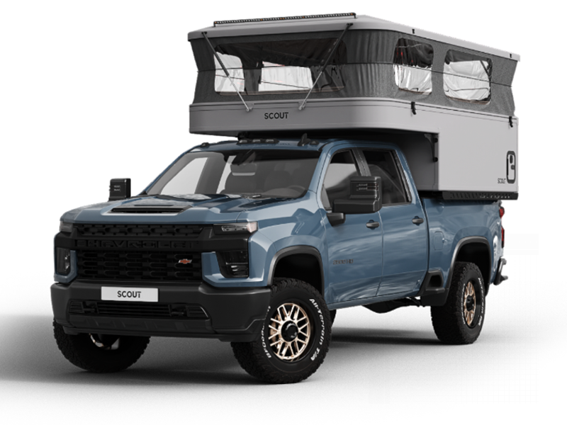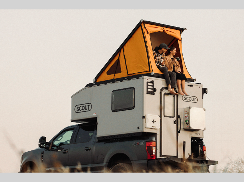 Explore the world in an Adventurer Manufacturing Inc. Scout truck camper! They are truly inspired by nature with their beauty, simplicity, and constant evolution. Roam far beyond campsites and blend into any terrain with a hybrid composite construction.