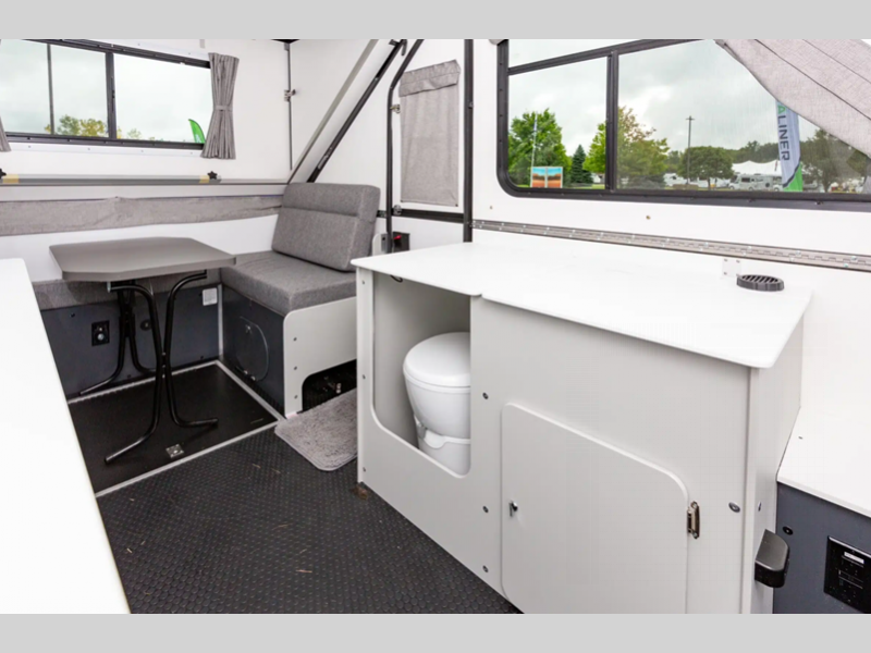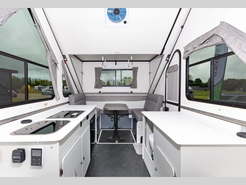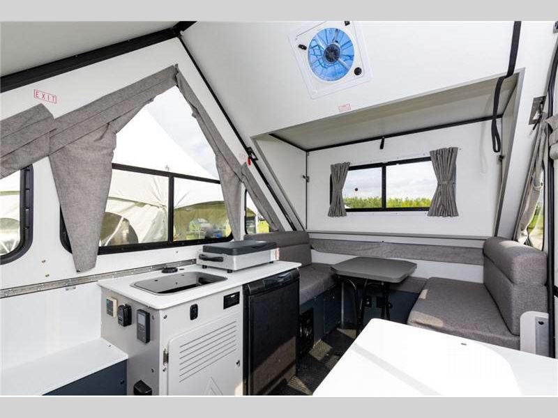 The Evolution by Aliner is the next generation A-frame camper with comfortable spaces and high-end materials, all in a package that can easily be parked in your garage.