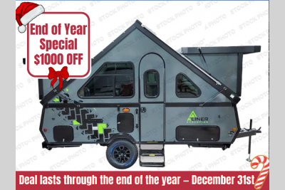 The Evolution A-frame camper by Aliner is coming to you with residential features and solid construction materials. You'll love the slate gray exterior, aluminum wheels, and the Azdel composite panels to help prolong the life of your camper. There are LED running lights, exterior baggage doors, and four stabilizer jacks to help keep your camper secure. You will also appreciate the keyless entry, the dual LP tanks with a cover, and the 200-watt solar panel on the front dormer for some off-grid power. The lift kit and 15" off-road tires add 3" to the height, allowing you to explore more roads, and you'll find many interior comforts to make you feel right at home!