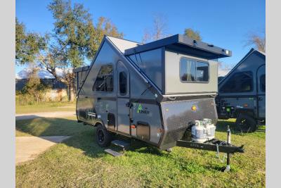 The Evolution A-frame camper by Aliner is coming to you with residential features and solid construction materials. You'll love the slate gray exterior, aluminum wheels, and the Azdel composite panels to help prolong the life of your camper. There are LED running lights, exterior baggage doors, and four stabilizer jacks to help keep your camper secure. You will also appreciate the keyless entry, the dual LP tanks with a cover, and the 200-watt solar panel on the front dormer for some off-grid power. The lift kit and 15" off-road tires add 3" to the height, allowing you to explore more roads, and you'll find many interior comforts to make you feel right at home!