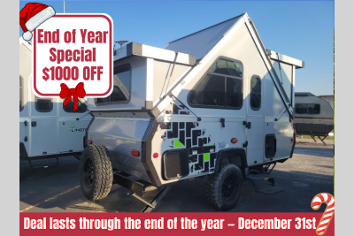 The LXE A-frame camper by Aliner construction includes Azdel lightweight, and vacuum bonded fiberglass panels for durability. Some extra features include an outside shower, LED running lights, additional corner windows, and an exterior propane connection if you want to hook up a grill. Inside, there are real hardwood cabinet doors, LED lights, plus three interior electrical outlets to keep the electronics charged. An optional 185-watt solar panel can be added on the front dormer for off-grid capabilities, and you can choose the optional rear hard dormer for even more head clearance!