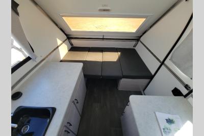 This camper is built on a tubular steel frame and includes Azdel composite roof/sidewalls for added durability. There are also aluminum wheels, a Dexter rubber torsion axle, and four stabilizer jacks to help keep your camper secure when you're at camp. You'll love the LED lights inside, along with the Fantastic fan and exterior outlets to keep your gadgets charged!