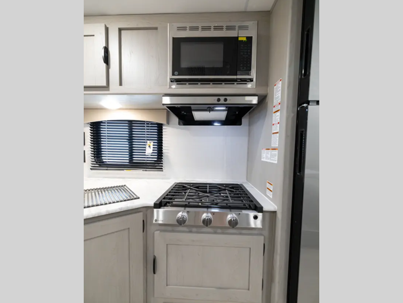 Sleeps 5 Slides 1 Length 30 ft 9 in Ext Width 8 ft Ext Height 10 ft Hitch Weight 740 lbs GVWR 7740 lbs Dry Weight 5868 lbs Cargo Capacity 1872 lbs Fresh Water Capacity 40 gals Grey Water Capacity 69 gals Black Water Capacity 32 gals Furnace BTU 30000 btu Available Beds RV Queen Refrigerator Type 12 Volt Refrigerator Size 10 cu ft Cooktop Burners 3 Shower Size 40" x 24" Number of Awnings 1 Water Heater Type Tankless On Demand AC BTU 13500 btu Awning Info 21' Power with LED Light Strip & Adj. Legs Axle Count 2 Washer/Dryer Available Yes Shower Type Standard Similar Floorplans