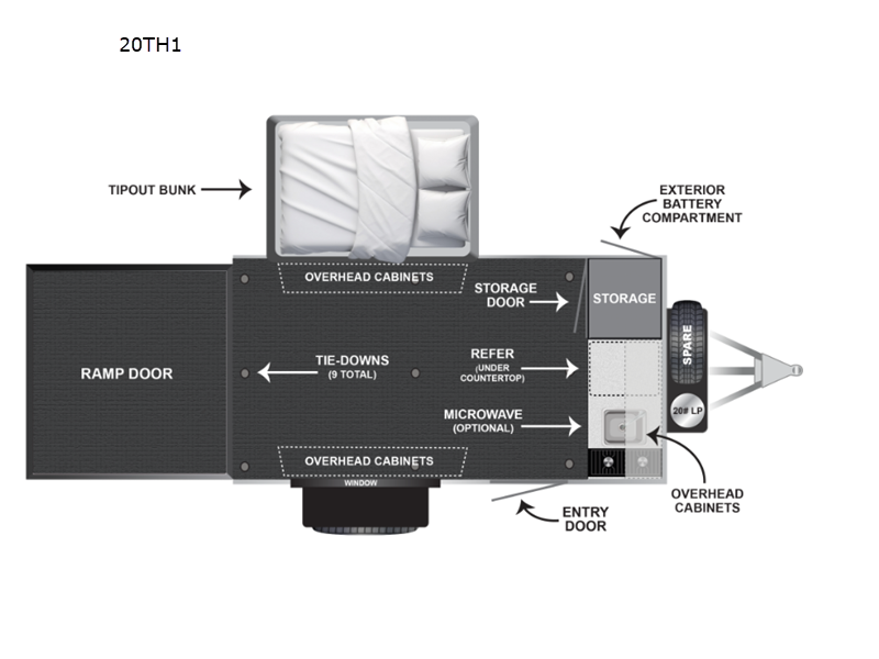 Encore ROG toy hauler expandable 20TH1 highlights: Tip-Out Bunk with Window 3.3 ... more about ROG 20TH1