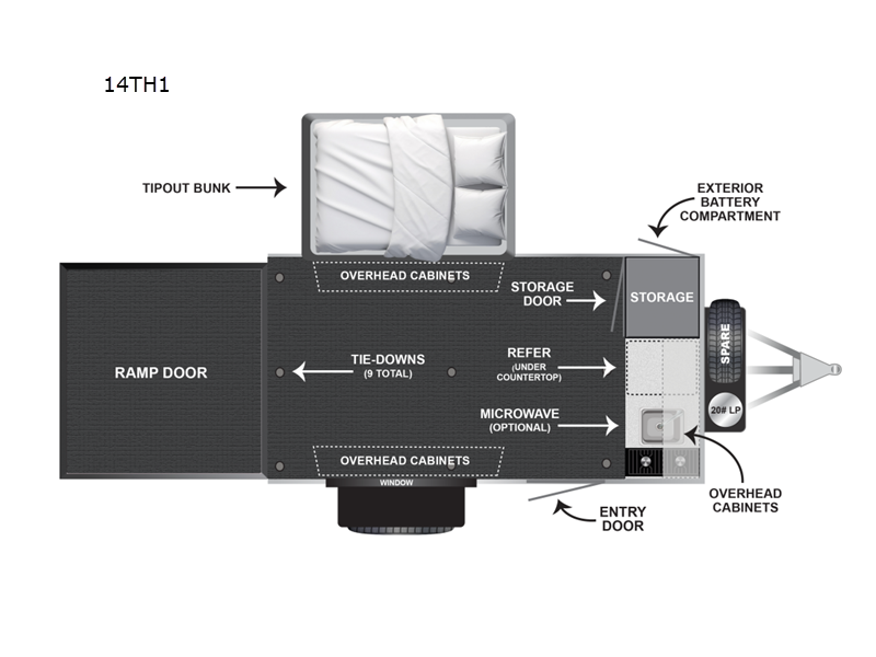 Encore ROG toy hauler expandable 14TH2 highlights: Two Tip-Out Bunks 3.3 Cu. Ft. ... more about ROG 14TH2