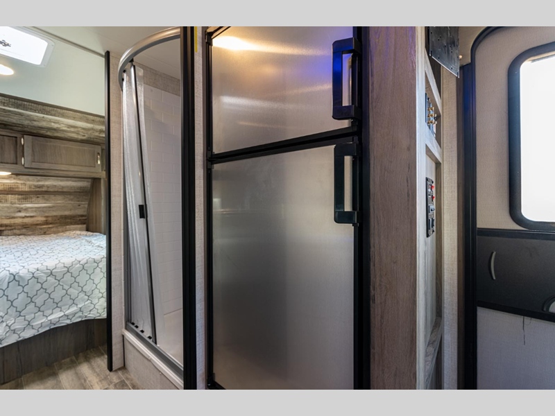 Sleeps 6 Slides 1 Length 26 ft 1 in Ext Width 7 ft 6 in Ext Height 10 ft 6 in Int Height 6 ft 11 in Hitch Weight 440 lbs Dry Weight 4038 lbs Cargo Capacity 2002 lbs Fresh Water Capacity 30 gals Grey Water Capacity 33 gals Black Water Capacity 33 gals Tire Size 14" Furnace BTU 25000 btu Number Of Bunks 2 Available Beds RV Queen Refrigerator Type 12V Refrigerator Size 8 cu ft Cooktop Burners 3 Shower Size 32" Number of Awnings 1 LP Tank Capacity 20 lbs Water Heater Type Tankless AC BTU 15000 btu Awning Info Electric w/LED Lights Axle Count 2 Number of LP Tanks 2 Shower Type Neo-Angled Electrical Service 30 amp Similar Floorplans