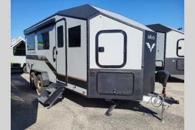 With any Black Wing toy hauler travel trailer by inTech RV, you will durable construction thanks to the fully welded cage and frame construction. There is also a one-piece aluminum roof, a power tongue jack, and solar prep outside for off-grid capabilities. The interior features ample storage space, a MaxxAir vent, a large farmhouse style sink with a gold faucet, and a Bluetooth stereo plus a Smart TV to keep you entertained. Additional features include USB and 120V outlets, an on-demand water heater, aluminum garage flooring, and available options to further customize your toy hauler!