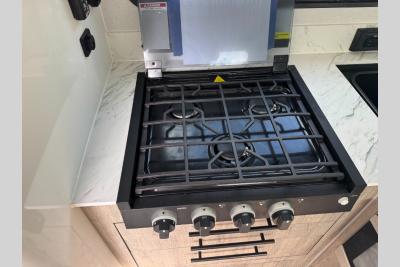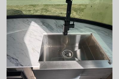 With any Sol travel trailer by inTech RV you will find strong, durable construction consisting of lightweight aluminum that is easier to tow and resists rust, water, and dents. The Tilt-Forward Design creates more space inside so you can stretch out, and the panoramic windshield gives a great view of the mountains, ocean, or forest! The elegant interior features tinted windows with shades, Infinity woven flooring, and a stainless steel cooktop and microwave. You will stay comfortable year around since these models include a 15K BTU A/C and a 16K BTU furnace.