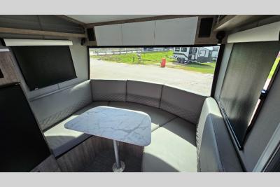 You will love the added space in this travel trailer that can sleep four people each night. There is a queen-size bed in the back, plus a convertible U-shaped dinette up front for the kids or your camping friends. The kitchen includes a two burner stainless steel cooktop, a stainless steel microwave, and a 4.5 12V compressor refrigerator for your perishables. You can also add the optional 10' power awning outside for shade as you visit with loved ones! This model has a dry weight that ranges from 3,113-3,543 lbs., a tongue weight between 465-495 lbs., and a carrying capacity between 525-610 lbs. When the optional Rover Package is chosen on this model, you'll enjoy rugged decals, a 3" lift, blackout wheels, and more; see dealer for more details!