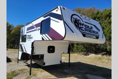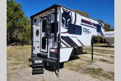 With any Wolf Creek truck camper by Northwood you can camp year around thanks to the high density block foam insulation, thermal pane windows, and the multi-layered substrate walls. The durable fully welded, thick-wall aluminum frame construction will add durability, and the Corona treated fiberglass will help combat leaks so you can enjoy your camper for years to come. Each model includes fabric night shade window treatments, custom one-piece formed countertops and dinette table, hardwood cabinet doors, and many more comforts. You will love the high value features included within the Wolf Pack, such as a Fox Landing ready rear bumper, a premium vent, electric jacks, and outside speakers.