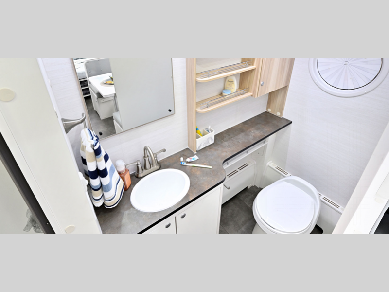 An open layout includes multiple windows to give you more natural lighting and great outdoor views, and a spacious dry bath will make it easier than ever to freshen up each day. There is premium soft-close cabinetry inside, along with composite flooring, a 4-person dinette, plus an Alde 3030+ heating/hot water system and Truma Aventa A/C system to keep you comfortable.