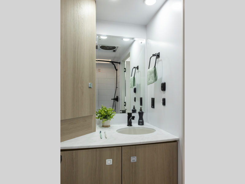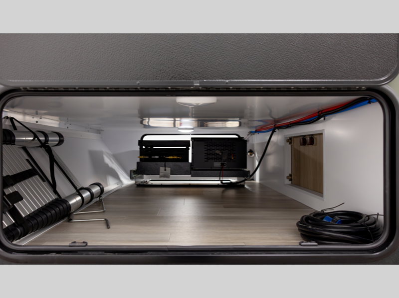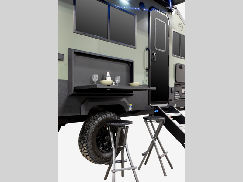 The CURT independent suspension and off-road knobby tires will make it easier than ever to traverse more back roads, and you're sure to love the Moss, gloss green exterior that blends in with your backdrop. Inside, there are thermo-foiled countertops, European style wood cabinets, square glass windows, and many more comforts! And an AIR 360+ omnidirectional antenna/Wi-Fi prep is Starlink compatible, giving you the option to stay connected as you're away from civilization, plus there is a solar option for off-grid capabilities!