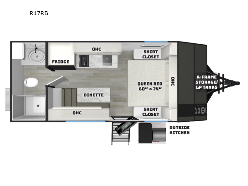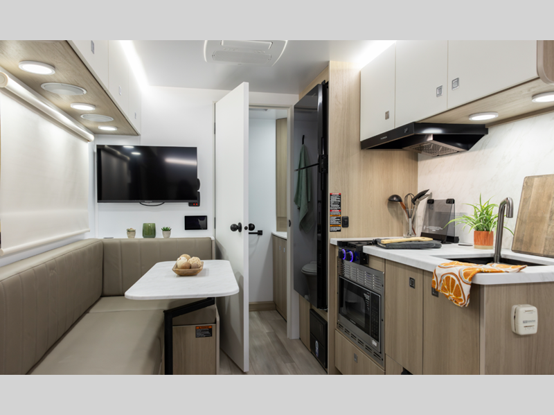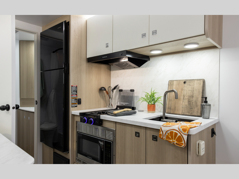 Sleeps 3 Length 20 ft 10 in Ext Width 7 ft 6 in Ext Height 11 ft Exterior Color Moss Hitch Weight 685 lbs GVWR 5885 lbs Dry Weight 4748 lbs Cargo Capacity 1137 lbs Fresh Water Capacity 34 gals Grey Water Capacity 30 gals Black Water Capacity 30 gals Tire Size 235/85R16 Available Beds RV Queen Refrigerator Type 12V Black Glass Refrigerator Size 10.6 cu ft Convection Cooking Yes Cooktop Burners 2 Shower Size 36" x 30" Number of Awnings 1 LP Tank Capacity 20 lbs Water Heater Capacity 6 gal Water Heater Type Gas/Electric AC BTU 18000 btu TV Info Smart TV Awning Info Carefree Legless Power w/Wind Sensor Axle Count 1 Number of LP Tanks 2 Shower Type Standard Similar Floorplans