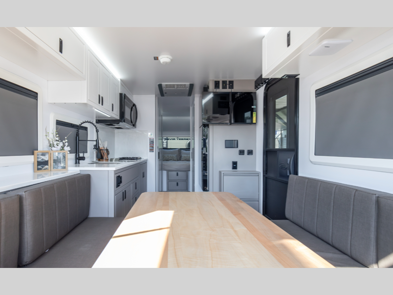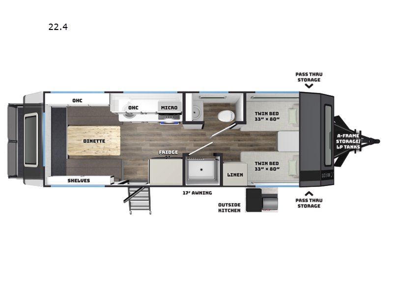 Sleeps 3 Length 25 ft 10 in Ext Width 8 ft 6 in Ext Height 10 ft 9 in Hitch Weight 1195 lbs GVWR 9995 lbs Dry Weight 8364 lbs Cargo Capacity 1636 lbs Fresh Water Capacity 76 gals Grey Water Capacity 30 gals Black Water Capacity 30 gals Available Beds Two Twin Beds Refrigerator Type 12V Refrigerator Size 10.6 cu ft Convection Cooking Yes Cooktop Burners 3 Number of Awnings 1 LP Tank Capacity 30 Water Heater Type Truma AquaGo Comfort Plus AC BTU 13500 btu TV Info Smart TV Awning Info 17' CareFree Legless Power Awning with Wind Sensor Axle Count 2 Number of LP Tanks 2 Shower Type Standard Solar Wattage 1000 watts Similar Floorplans